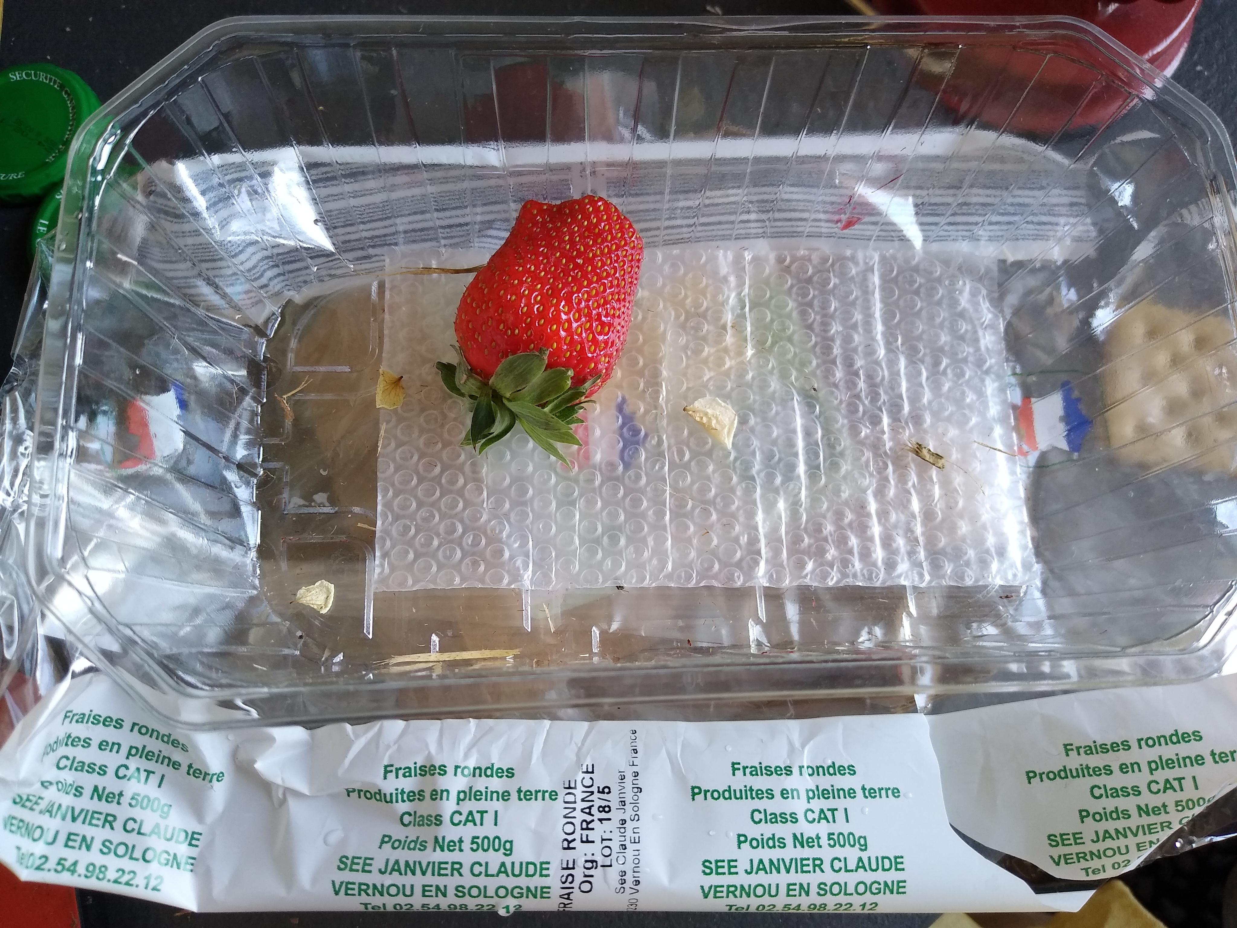 Barquettes de fraises acheté dans un lidl. Enfin des françaises!. Dommage elles n'ont aucun goût, pourtant cat 1 et plus chères que les Espagnoles.